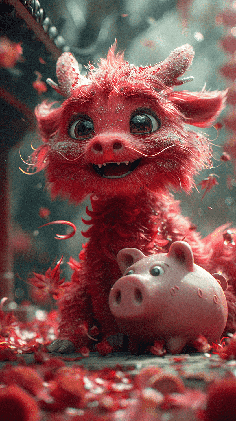 在这张充满动画风格的身份证照片背景中,一条由棉花糖材质构成的中国红龙,带着快乐的表情和温暖的微笑,成为了视觉的焦点。它的前方是一个巨大的存钱罐,仿佛在守护着财富与吉祥。整个画面以红色为背景,营造出喜庆而温馨的氛围。龙的全身居中摆放,硬光照明下的强烈光感和C4D技术的运用,使得整个作品呈现出高清的质量和细节。这不仅是一张具有创意的照片,更是一件充满中国传统元素与现代艺术结合的佳作。