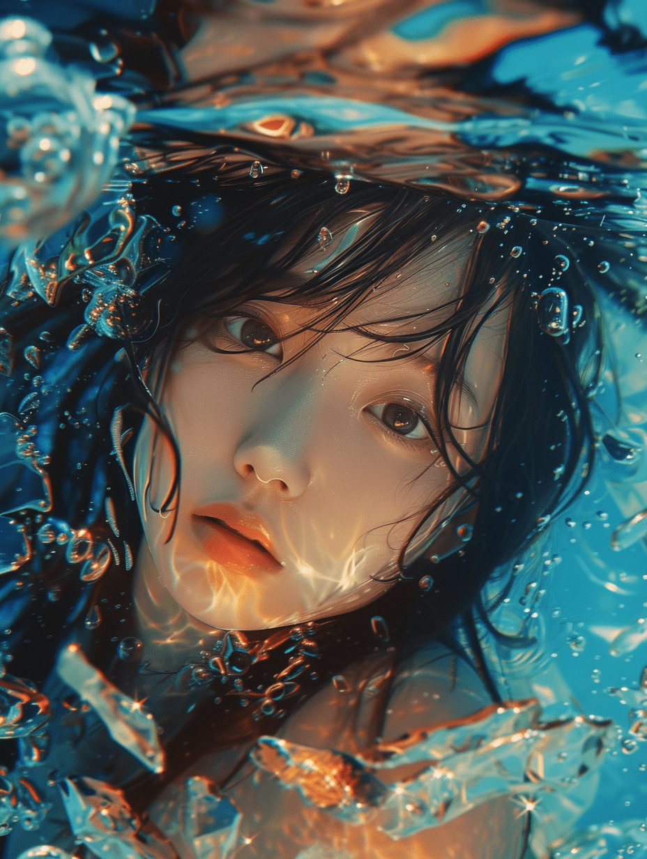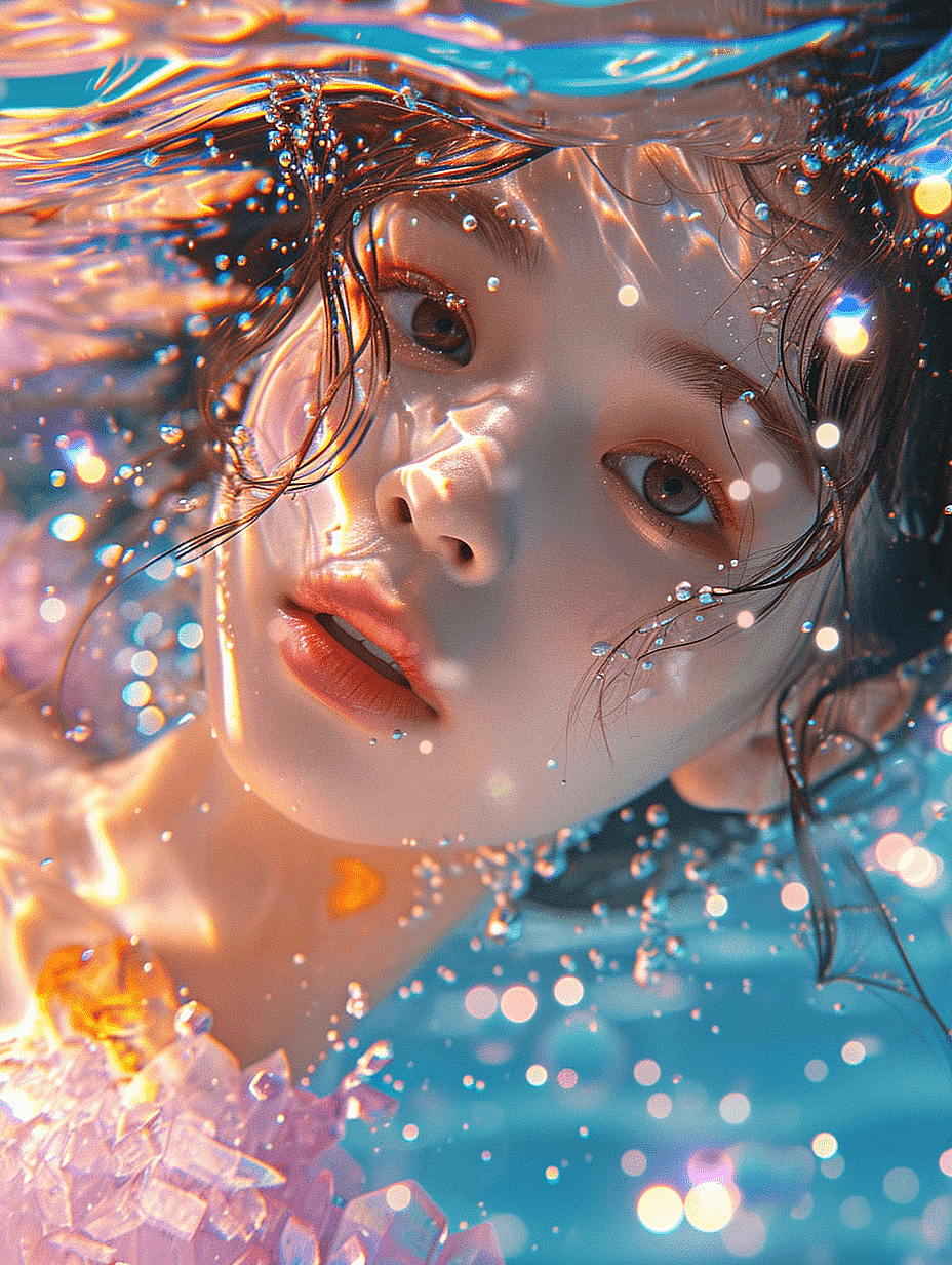 沉浸在湛蓝水域中的少女,她的每一个动作都仿佛是艺术的一部分。这幅画作采用了现实主义的光与色彩运用,再结合动漫美学,营造出既可爱又多彩的视觉效果。浅橙与蓝色的温暖交织,让人仿佛能感受到水面的温柔触感。 每一个细节都是稍纵即逝的美丽,就像是少女周围水晶壁纸中的闪烁光辉。柔焦现实主义的风格让画面更加柔和,带有一丝朦胧美。泳池核心(poolcore)的主题,融合了紫罗兰和琥珀色调,透明的水面下显现出层层深意。 让我们一起沉醉于这幅作品中,感受少女与水的和谐共鸣,体验一场视觉与情感的双重盛宴。