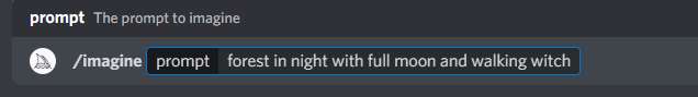 3、现在只需要在输入框输入 /imagine ,prompt(提示)后打上自己想要呈现的图片对象或风格,就可以开启AI智能绘图之旅。